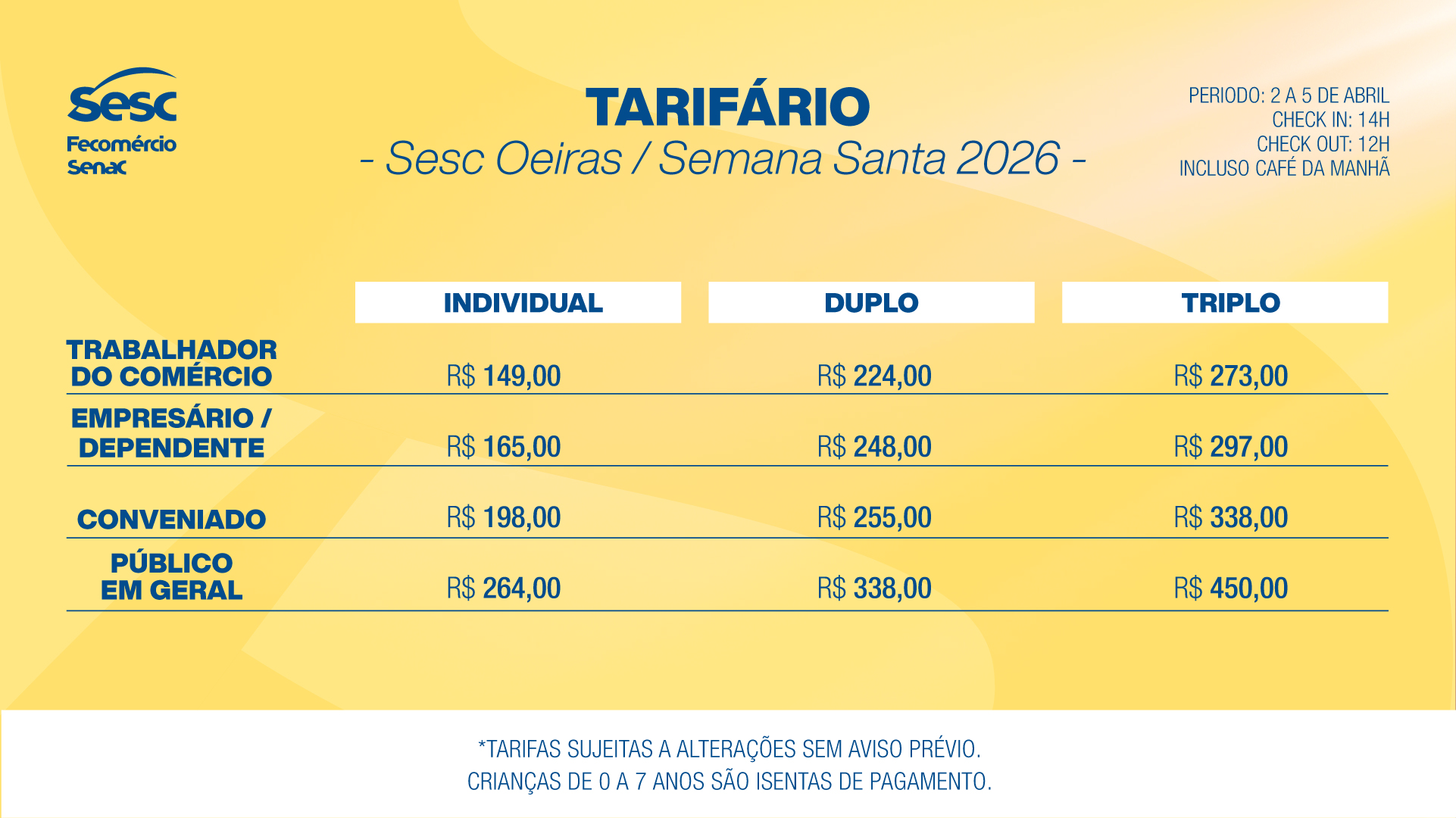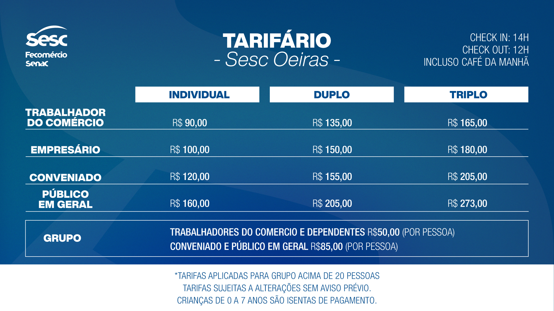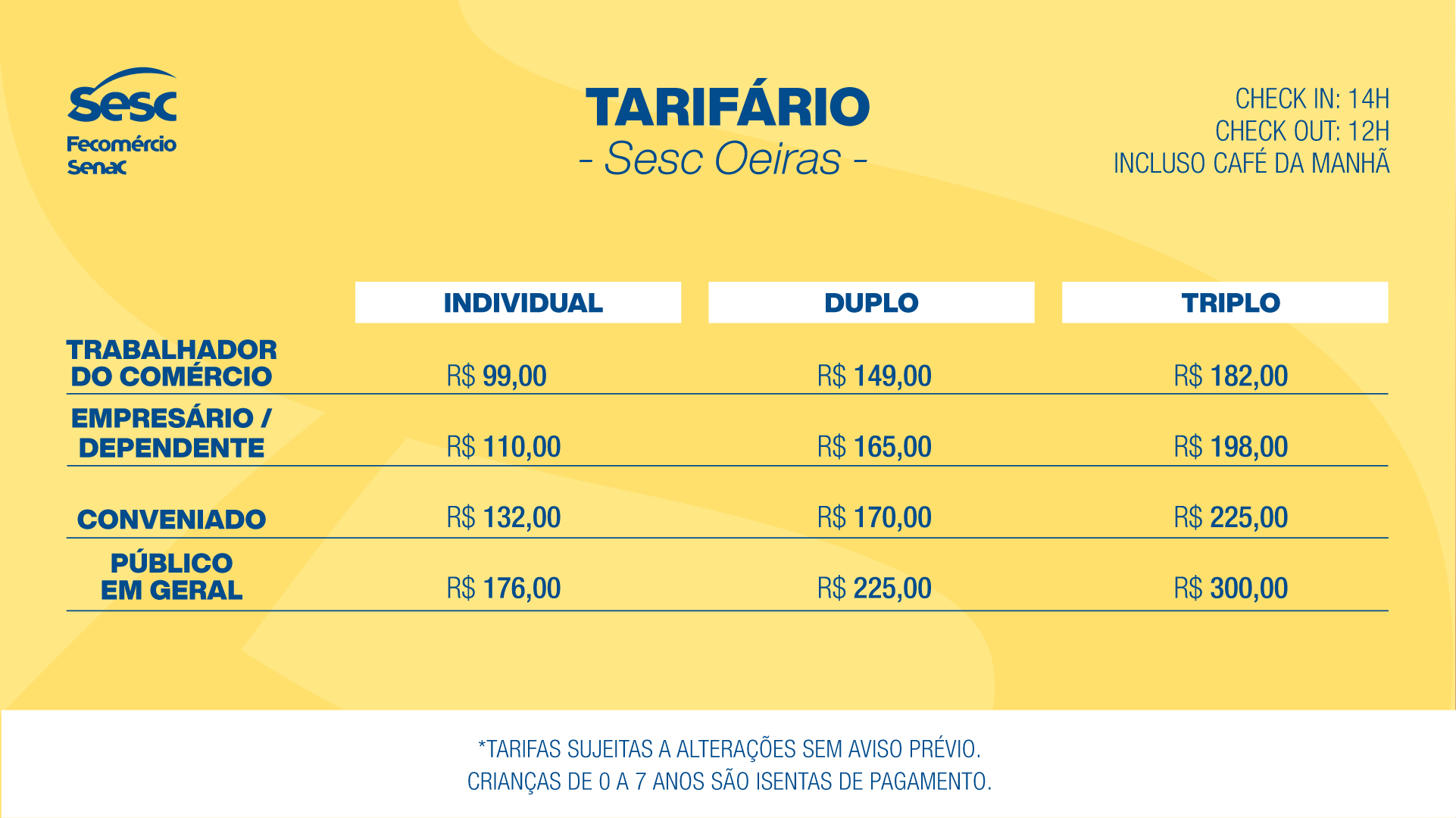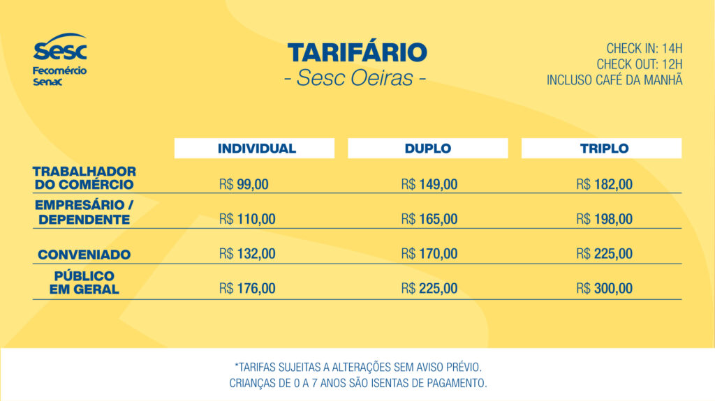 TARIFÁRIO - SESC OEIRAS